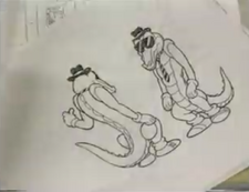 Sega Software R&D Dept. 8 created an alternative design for Vector, illustrating the character wearing sunglasses, hat and tie.[16] The design was found alongside concepts for the Sonic the Hedgehog manga published by Shogakukan, where characters Amy Rose and Charmy Bee debuted.