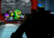 - ↑ Sonic Team (4 November 2010). Sonic Gratis Riders. Xbox 360. Sega. Level/Area: Terminal Factory. "Vector the Crocodile: I've had it upwardly to here with robots and Eggman and ALL of it!"